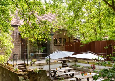 De Watermolen van Rakhorst biedt niet alleen drie creatieve zalen in de historische molen en een grote authentieke boerenschuur, maar zodra het weer het maar ook een beetje toelaat, vormt ook de natuurlijke omgeving een inspirerende plek voor diverse bijeenkomsten. Op het eigen landgoed zijn er volop mogelijkheden om in de openlucht te vergaderen, te ontmoeten, te brainstormen, te spelen, te eten en te borrelen. Kies bijvoorbeeld voor een van de terrassen rondom de stuwvijver of het gezellige molenplein om in de frisse buitenlucht tot nieuwe inzichten te komen.
